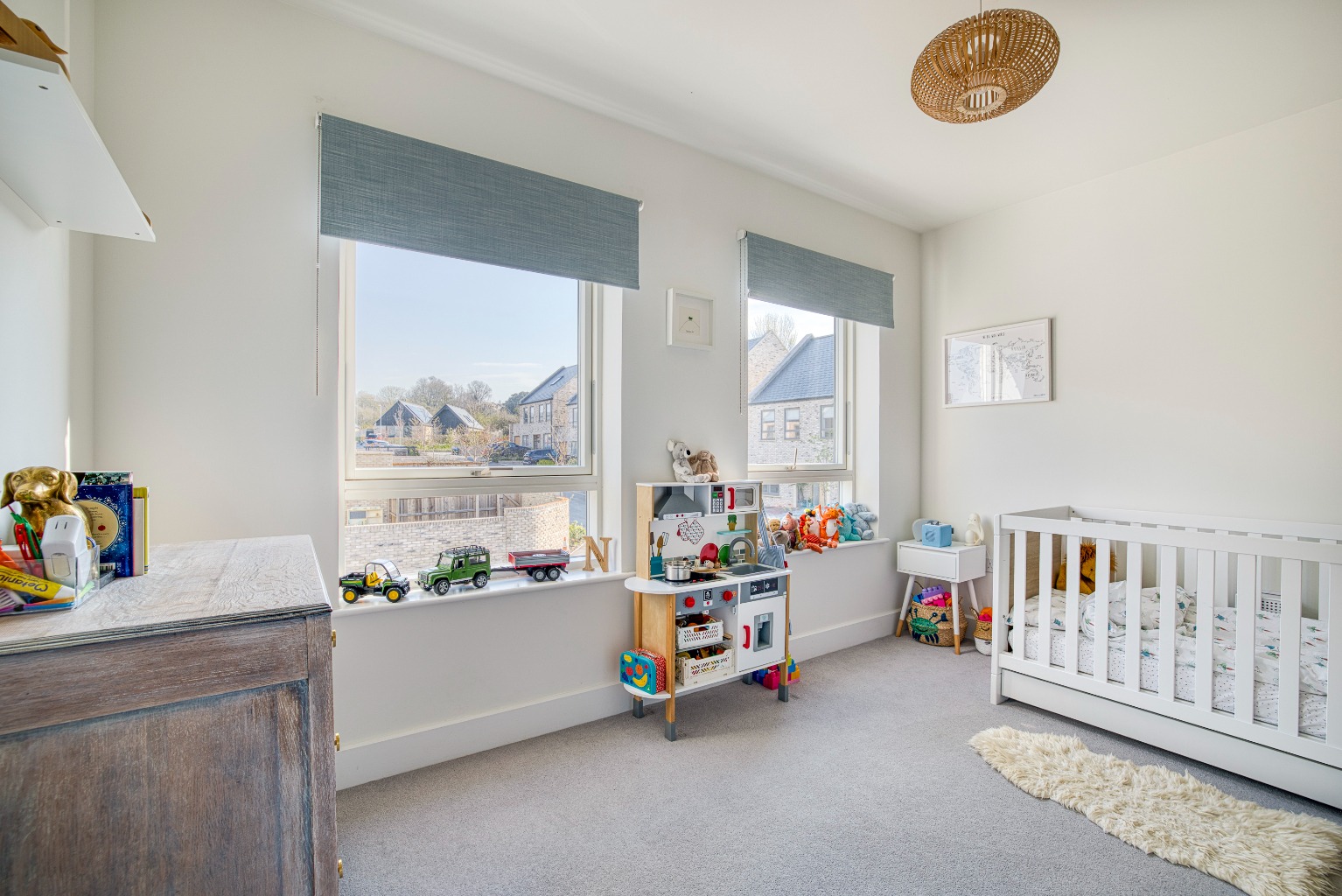 There are two versatile reception rooms, currently arranged as a sitting room and a playroom. The sitting room has a large front-facing window, and internal double doors which open into the kitchen dining room.